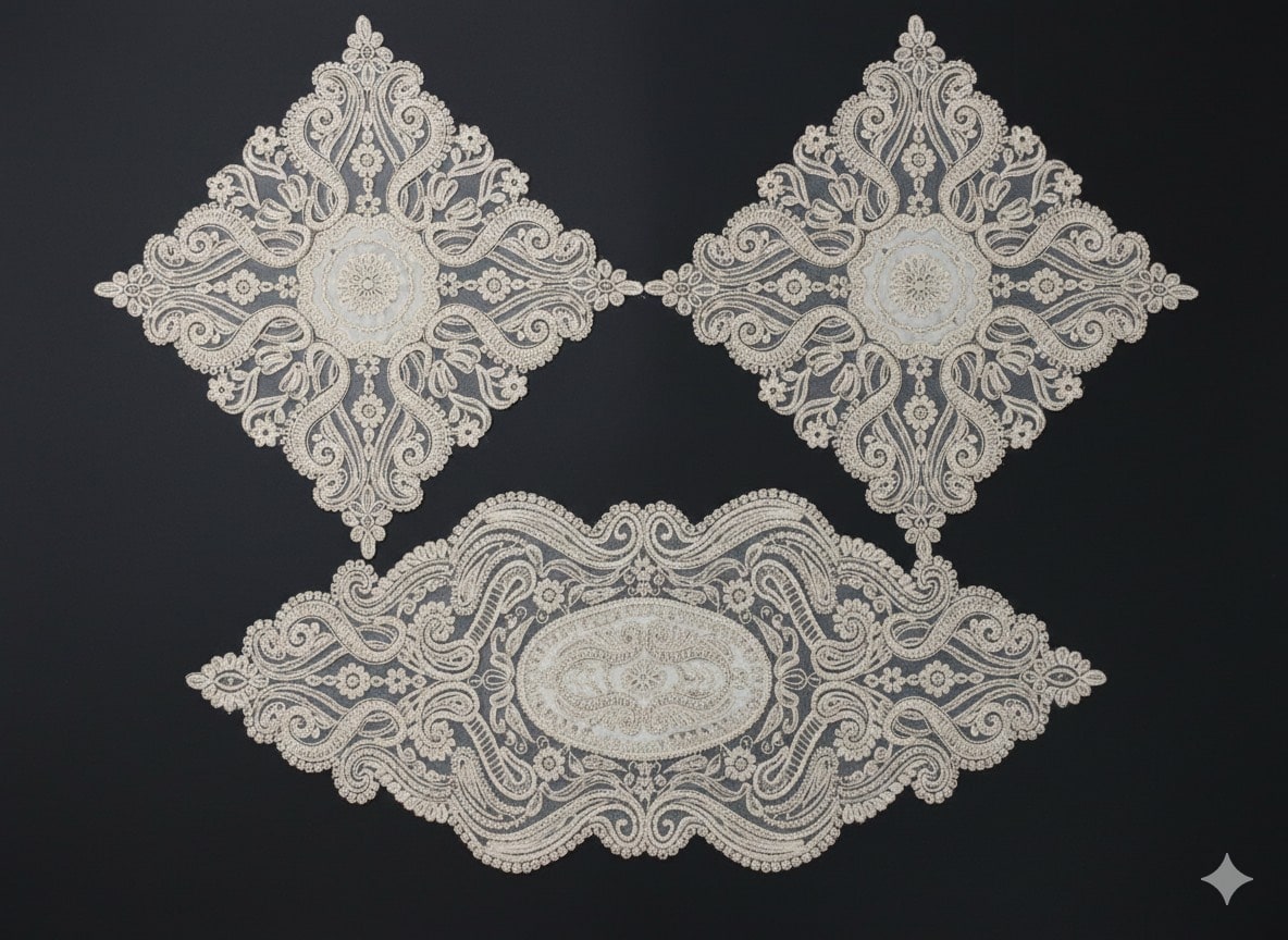 این ست دارای دو رومیزی با ابعاد ۳۵*۳۵ سانتی متر و یک رانر متوسط با ابعاد ۹۰*۴۰سانتی متر است