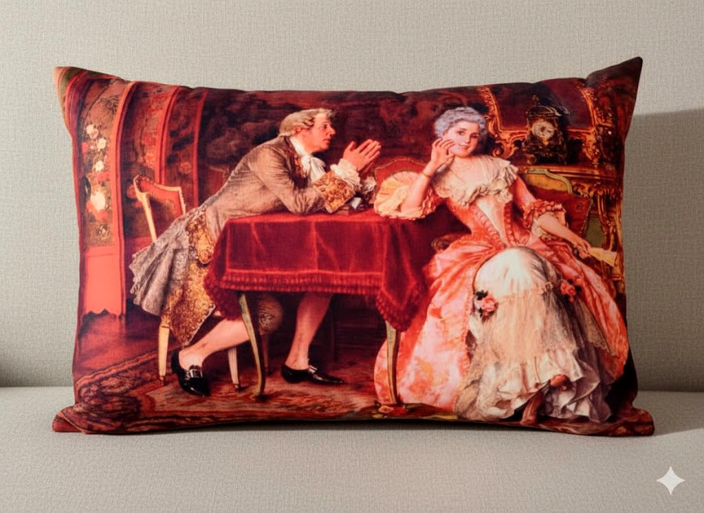روبالشی طرح تابلو زن و مرد عاشقانه و وینتج التماس