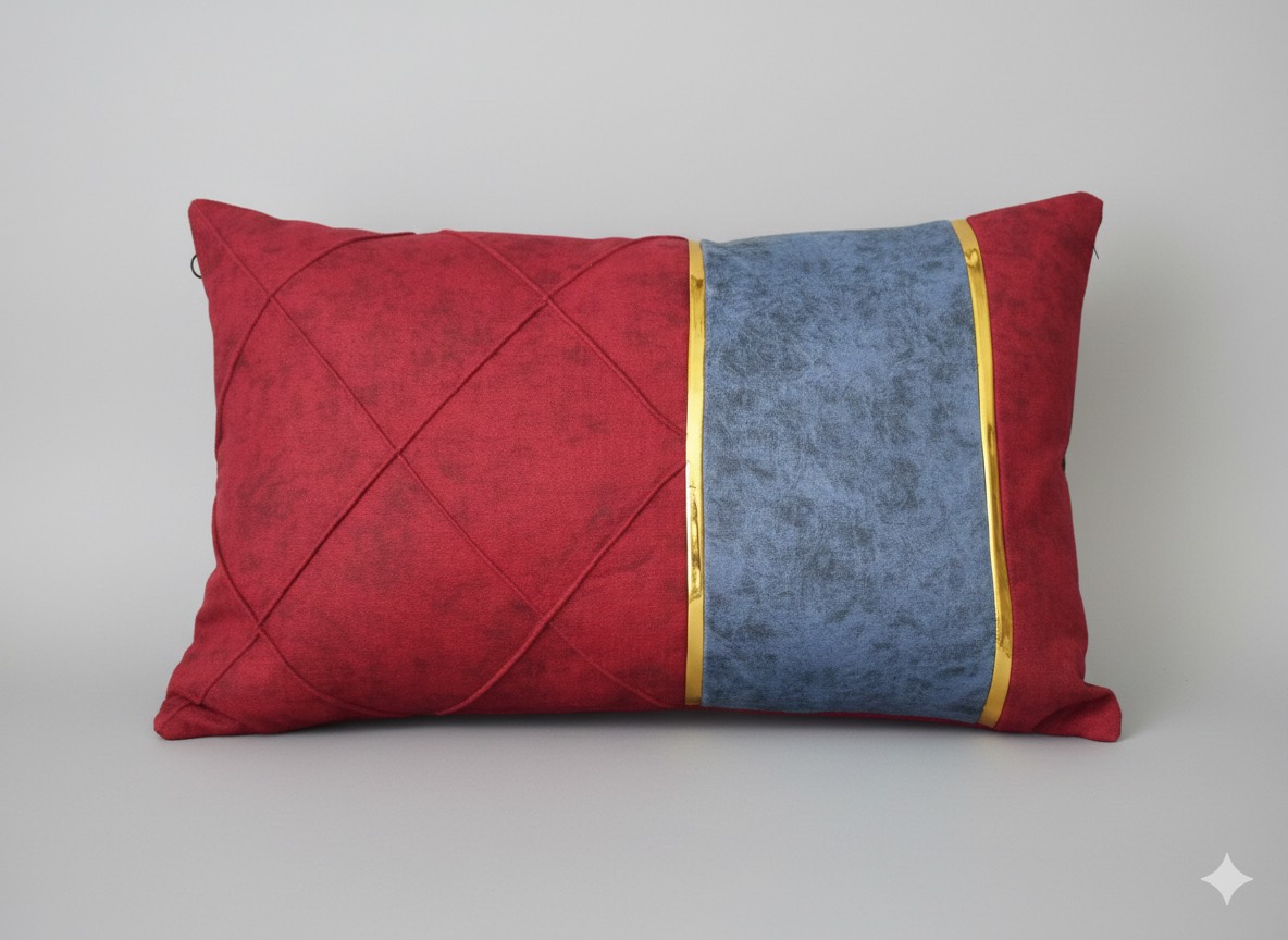 رو بالشی یلدایی قرمز و آبی نوار دار شیک مجلسی