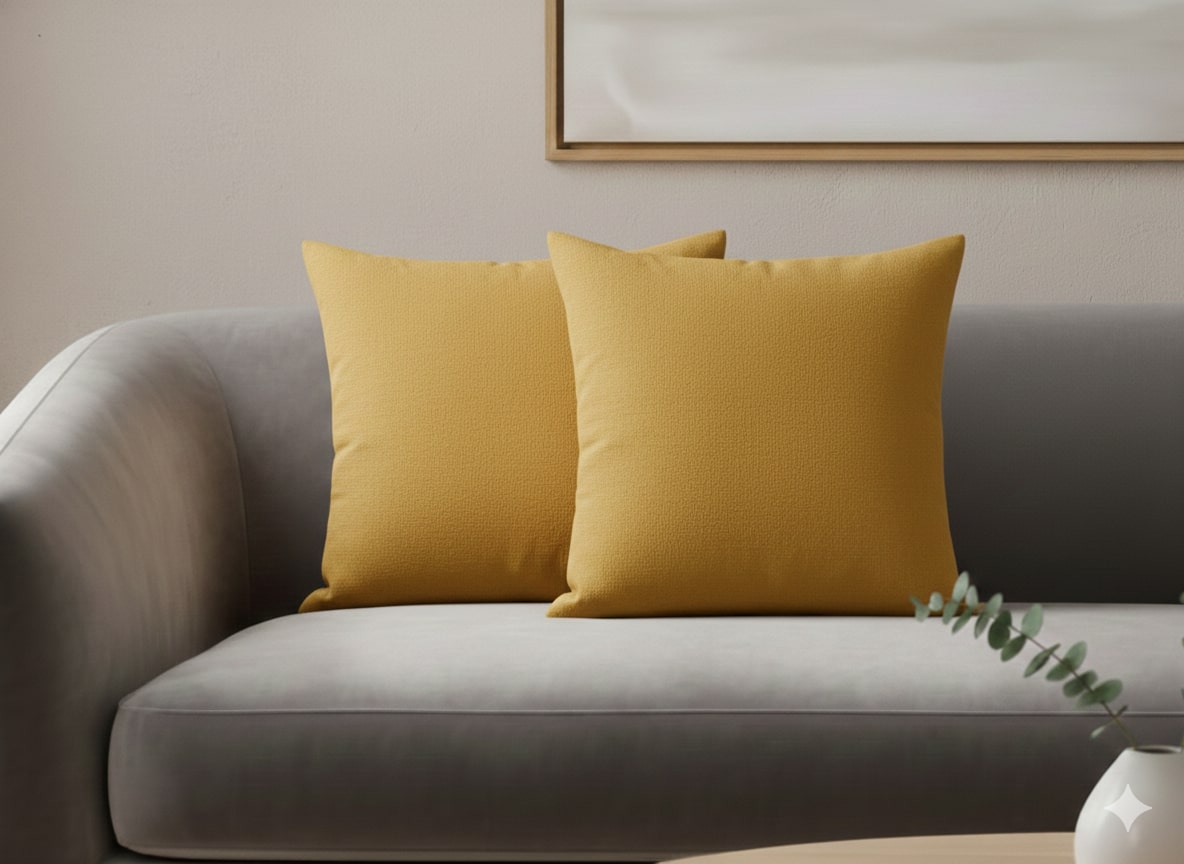 کوسن ساده و شیک مخمل مبلی زرد خردلی